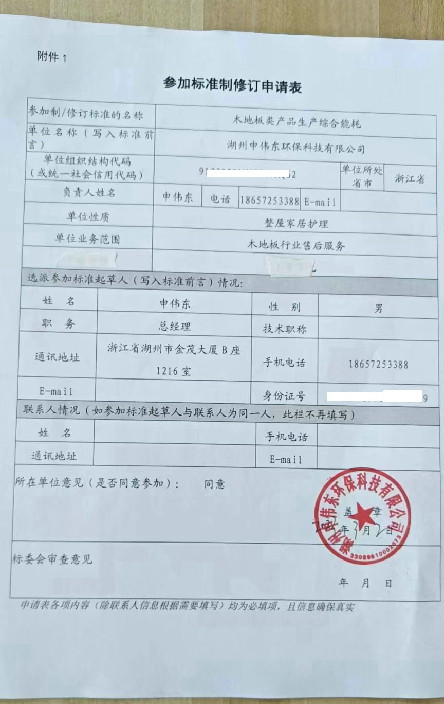 湖州申偉東環(huán)保科技有限公司榮幸之至獲得國家《行業(yè)》標(biāo)準(zhǔn)制修訂起草單位資格。借此機(jī)會(huì)工匠哥代表誓將扛起木地板售后服務(wù)大旗事業(yè)推向更高層面。